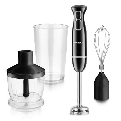 Блендер Aurora AU 3669 представлен в виде погружного ручного устройства в привычном всем классическом формате. Удобная рукоять с эргономично расположенными переключателями, черно-белое сочетание, приятные фактуры – все это стало преимуществами одной оболочки, которая воплотила в себе лучшее из своего класса устройств. При этом модель очень минималистична внешне, за счет чего вписывается в любой концепт обустройства кухонного пространства.
