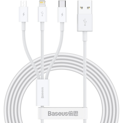 Кабель Baseus Superior Series Fast Charging 3-in-1 (Micro USB+Lightning+Type-C) 3.5 A (1.5 м) — универсальный кабель для зарядки гаджетов с разъемами Lightning, Micro и Type-C.