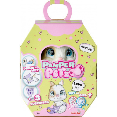 Компания Simba представляет милого маленького «Pamper Petz Зайчик», который подарит своему хозяину множество приятных эмоций. А узнать кто же стал твоим любимцем, девочка или мальчик, легко по волшебной лапке. Лишь протри ее влажной губкой и увидишь, как на ней проявится цвет, розовый или голубой, который и определит пол. Зайчик умеет пить воду из собственной бутылочки. Напои его и не забудь проверить подгузник, который при намокании меняет цвет. Он имеет подвижную голову и лапки, что обеспечит веселую игру, и даст возможность взять любимца с собой на прогулку. В наборе ты найдешь 3 пакетика-сюрприза с аксессуарами для зайчика (бутылочка, пустышка, вкусности). Играя с ним, ребенок учится быть внимательным и заботливым.