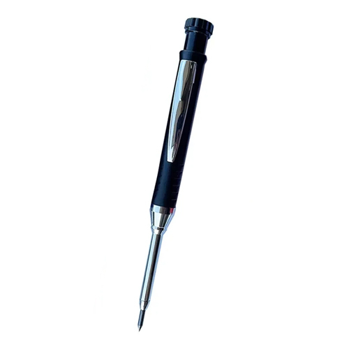 Автоматический строительный карандаш предназначен для точной разметки даже в труднодоступных местах. Благодаря удлинённому тонкому металлическому наконечнику длиной 40 мм можно легко наносить метки через отверстия, щели и в других узких пространствах, где обычный маркер вряд ли справится.