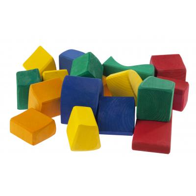 Різноманітний світ кольорів та форм втілений у дерев’яному наборі із великих дерев’яних брусків німецького виробника іграшок nic. Усі 17 деталей зав’язані у текстильну сітку, яку можна використовувати для зручного зберігання конструктора або інших іграшок. Матеріал, з якого вироблений набір – натуральне дерево, вкрите матовими фарбами на водній основі. Фарби чудово підкреслюють малюнок дерева на сторонах брусків. Деталі великі, але легкі, вони приємні на дотик і якісно оброблені.