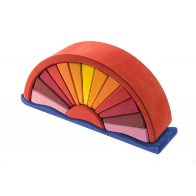Червоний схід сонця над синім морем – це захопливий розвиваючий конструктор для дітей німецького виробника іграшок nic. Набір запакований у поліетиленову плівку і складається з 16 деталей. Вони вироблені із натурального дерева, вкритого матовими нетоксичними фарбами. Деталі конструктора легкі, якісно оброблені, їх приємно тримати в руках. Розміри комплекту: 28х13х7 см.