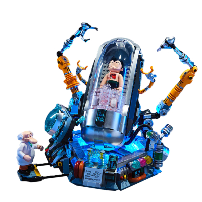 Черпая вдохновение из сцены в аниме, где доктор Тенма «оживляет» Астро Боя, новое творение изображает исследовательскую лабораторию в Министерстве науки, где роботизированное тело Астро Боя официально активируется среди грозового электричества благодаря неустанным усилиям доктора Тенмы…