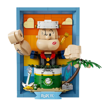 В набор входят две тщательно созданные сцены – пляж и сад – обе богаты деталями и рассказом. Сцена на пляже достоверно переосмысливает мир Попая с такими элементами как банки со шпинатом, якоря и кокосовые деревья, что намекает на волнение океанских приключений. Сцена сада излучает тепло и романтику с цветочными акцентами, такими как розы, деликатно встроенные, чтобы отразить нежный и волшебный характер Olive Oyl.