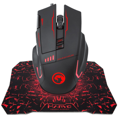 Отличное решение для геймеров, мышь и игровая поверхность в одном наборе. Игровая проводная мышь MARVO G-909L разработана для максимального комфорта во время игры, удобный хват, эргономичный дизайн. Оцените новое покрытие поверхности мышки из матового пластика, а возможность изменения веса мышки добавит удобства и комфорта для руки. 8 программируемых кнопок для любых игр, легко записывайте макросы и меняйте их через фирменное программное обеспечение. Все основные клавиши выполнены с усиленной конструкций механизмов, для тех кто с силой нажимает на клавиши. Стильная подсветка из 7 цветов с эффектом пульсации, выглядит непревзойденно и атмосферно.