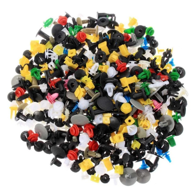 Набір кріплень, кліпс і пістонів нараховує в собі до 500 елементів декількох десятків видів. Такий набір стати в нагоді під час обшивки бампера, капота, шумоізоляції та інших робіт що пов’язані з налагодженням і тюнінгом автомобіля.
