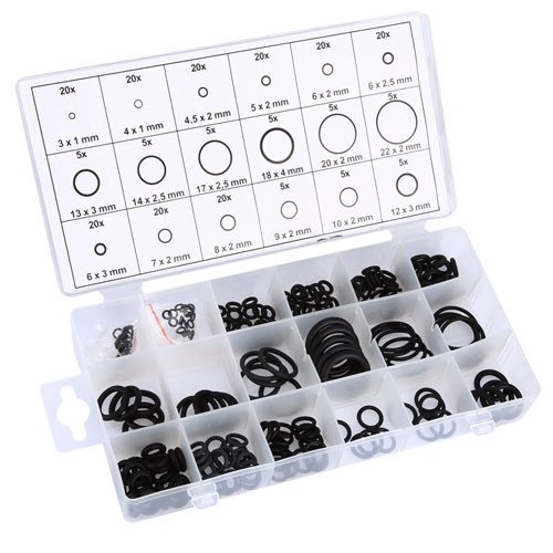 Набор из 225 резиновых уплотнительных колец (О-рингов) предназначены для автомобильных кондиционеров и не только. Отлично подойдет для личных и профессиональных мастерских, гаражей и сантехнических услуг.
