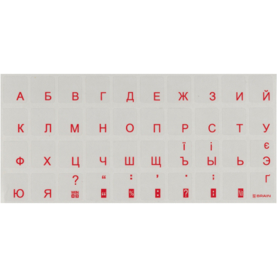 AIN red хорошо крепятся к поверхности клавиатуры. При необходимости, наклейки на клавиатуру легко удаляются с поверхности и не оставляют следов. Не боятся влажной уборки. Раскладка русско-украинская.