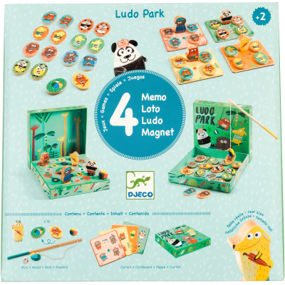 С набором игр 4 в 1 Лудопарк от Джеко дети забудут время. Ловить веселых животных, собирать парные фишки и многое другое предлагает малышам этот комплект. Внимательно изучив правила, дети могут начинать увлекательные игры.