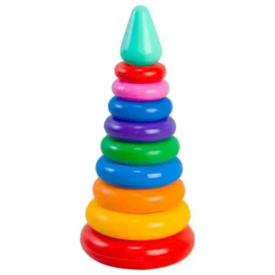 Пирамидка состоит из колец разного размера и цвета, нанизанных на ось с основанием, а также колпачка. Кольца пирамидки удобно держать в маленьких ладошках. Снимая и набрасывая кольца на основание, малыш изучает формы, размеры и цвета, учится пространственно мыслить и считать.