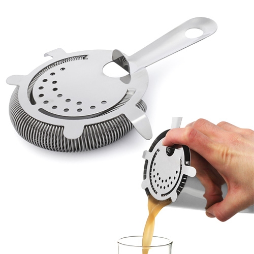Стрейнер — специальное барное ситечко для отсеивания крупных частиц (льда, кусочков фруктов/ягод) при переливании коктейля из бостонского шейкера.