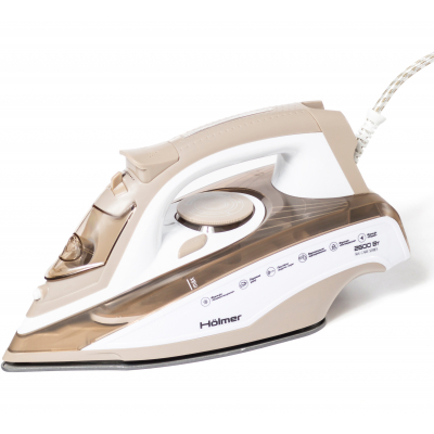 Утюг Hölmer HIT-2642 для сухой глажки и с паром, имеет мощность 2600 Вт (время нагрева max ~31 cек), паровой удар 140 г/мин, постоянную подачу пара 40 г/мин. Тефлоновое покрытие подошвы обеспечивает легкое скольжение по тканям различных типов, разглаживая даже самые сложные участки.